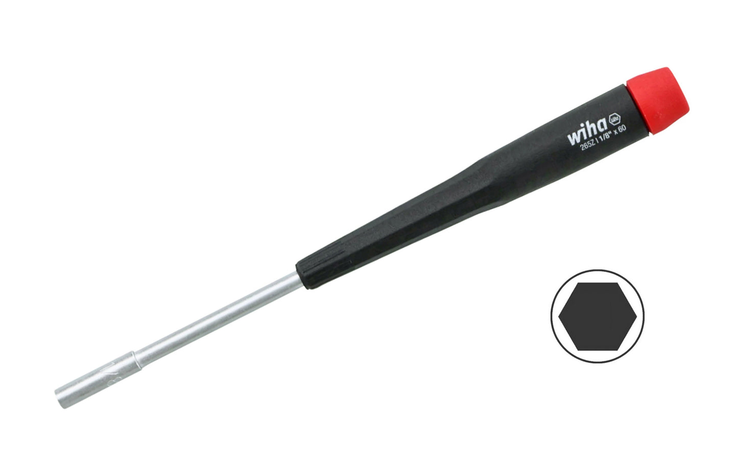 A high quality Wiha SAE standard precision nut driver set made out of hardened CRM72 tool steel. Excellent for working on small components & modern electronics. The classic precision style screwdriver has a hex profile finger grip for precise torque, a tapered handle, & a smooth-turning cap for rapid rotation. Precision nut driver set made by Wiha Tools. Made in Germany. -