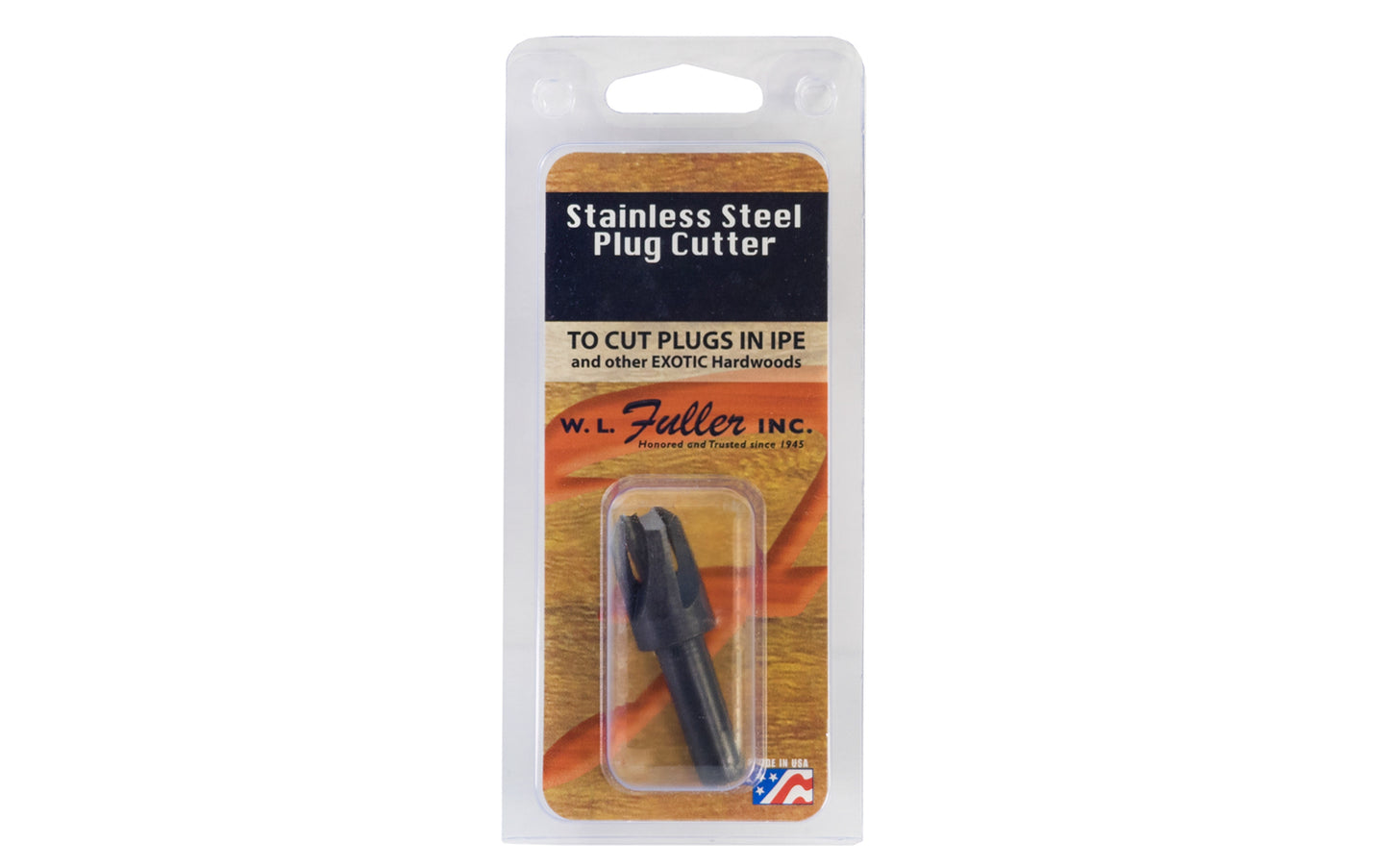 • A high quality American-made plug cutter made by WL Fuller. These stainless steel plug cutters are designed to cut plugs to fit over the head of the screw if counterbored below the surface, particularly in hard dense woods such as IPE & other exotic hard woods. Designed for clean cutting & hardened for long life, the cutter has a rounded inside diameter which makes the chamfered plugs for easy starting in counterbored holes. The plug remains in the board & can be broken out with a screwdriver, or the board can be sawed to free the plug. The SS plug diameter is slightly larger than a counterbore diameter for a tight fit every time.  Made in the USA.